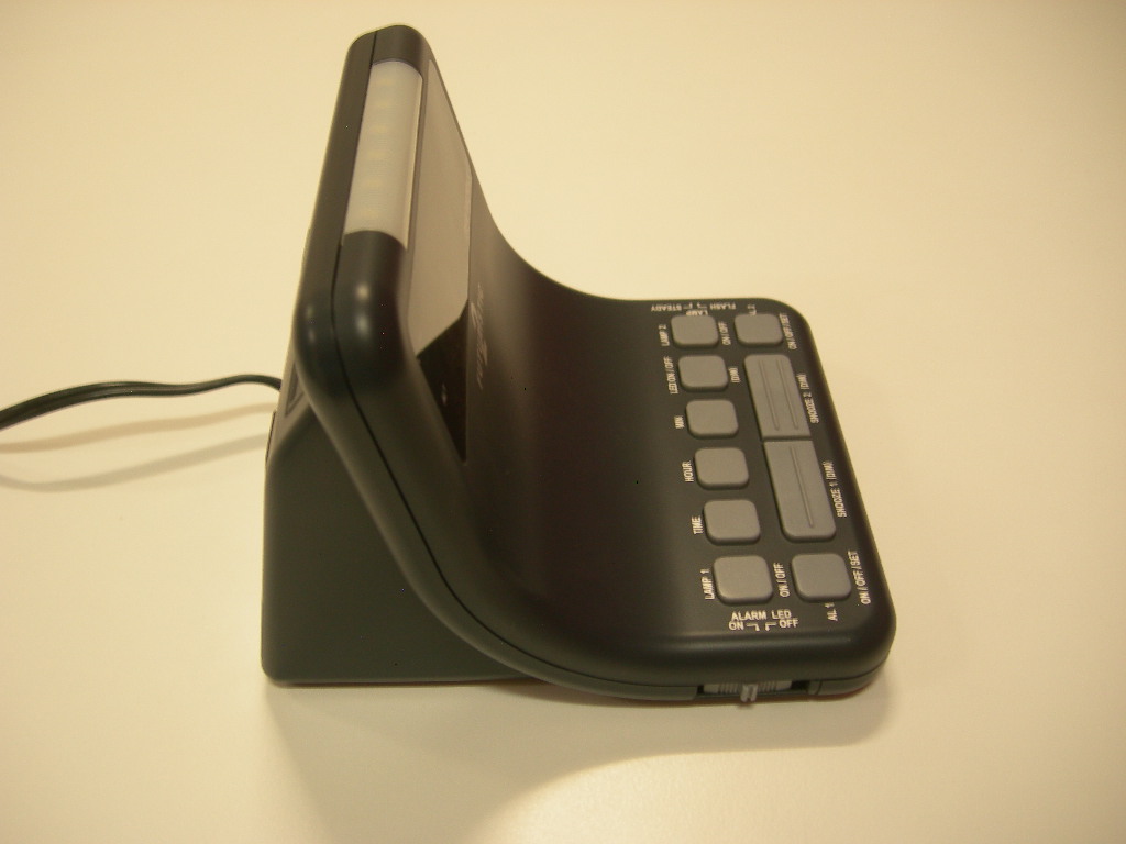 Depress & hold the SNOOZE button to dimmable the red display (1 of 3)